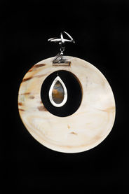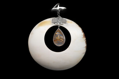 RUTILATED QUARTZ BULKY PENDANT IN OFF WHITE WATER BUFFALO HORN AND SILVER
