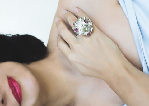 BULKY DOMED RING WITH CANDY COLOR TOURMALINES IN SILVER