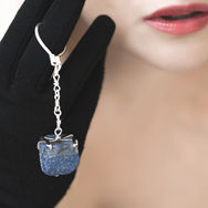 Two freeform rough-cut azurite gems linked asymmetrically together with a grid of signature LdL logo motifs set to form this extraordinary pendant with the mesmerizing blue color. An ajour bail created by a folded signature LdL logo motif allows the pendant to rest deftly against the skin, oscillating with refinement.